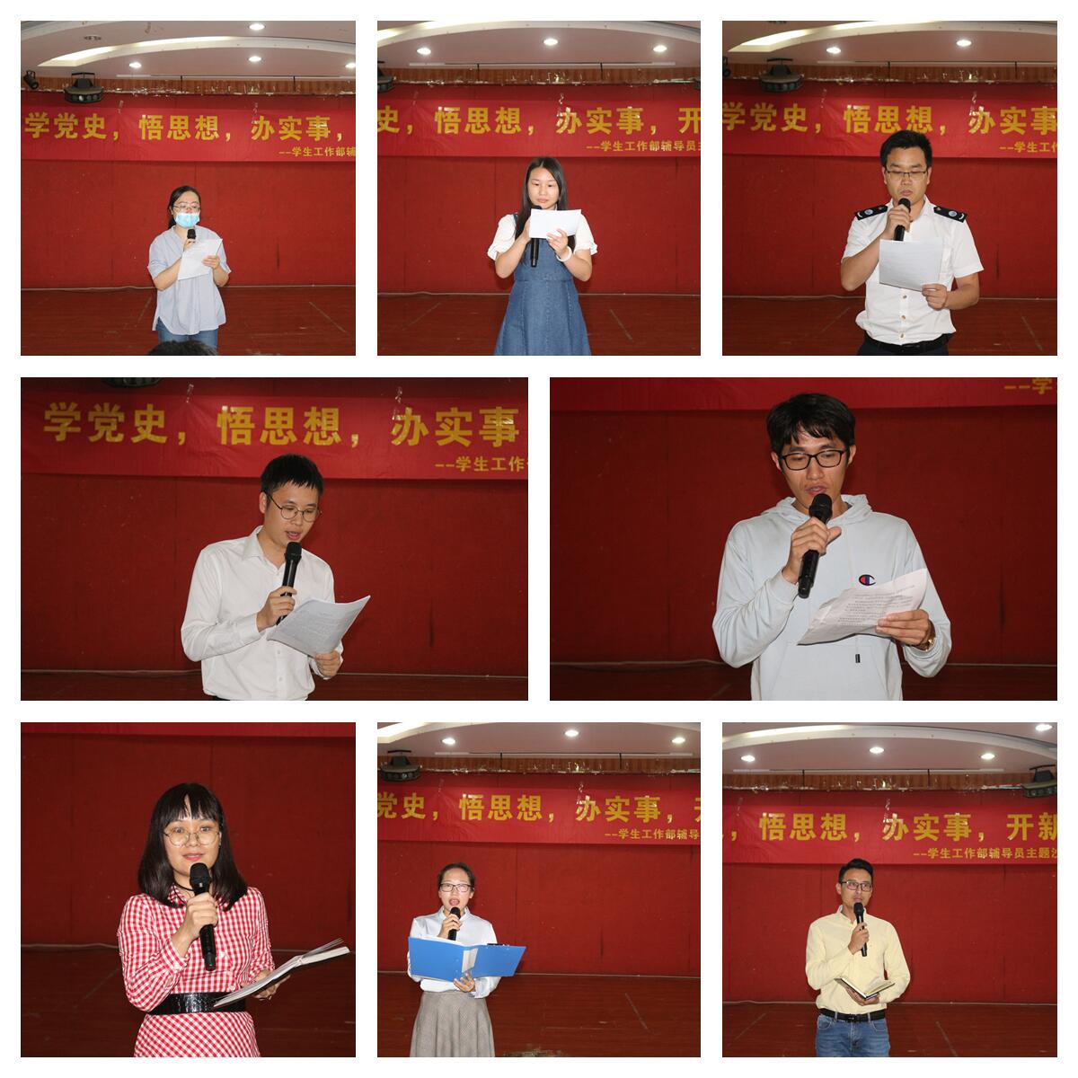 接着,辅导员围绕“如何突出学生党员在党史学习教育和引领中的作用”为主题,进行了小组讨论和总结发言。辅导员们普遍认为,要发挥学生党员的作用要从以下三方面入手,第一,要调动学生党员的积极性,将党史学习教育与打造支部品牌特色联系起来。第二,要发挥学生党员的示范性,串点成线,点面结合,真正在学生中起到先锋模范作用。第三,要增强学生党员的实践性,将从党史学习教育中汲取的奋进力量转为为人生动力,奋发学习,投身实践,在时代洪流中彰显青年学生应有的本色和气概。