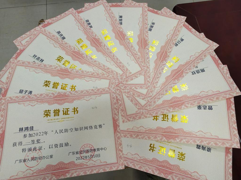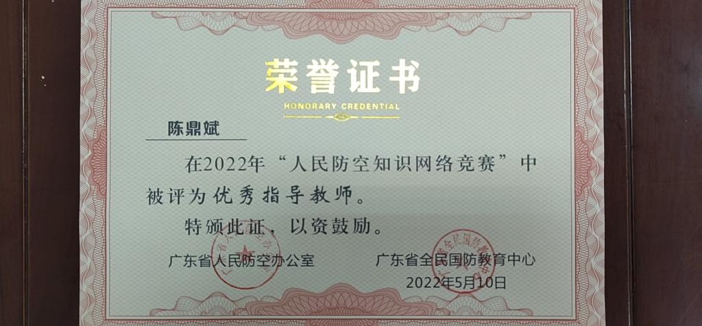 (学生工作处 供稿)近日,由广东省人民防空办公室主办的2022年人民防空知识网络竞赛结果出炉,我校学生荣获一等奖11项,二等奖7项,三等奖12项,成绩斐然!同时,学校获评“优秀组织奖”,学生工作处陈鼎斌同志获评“优秀指导老师”。