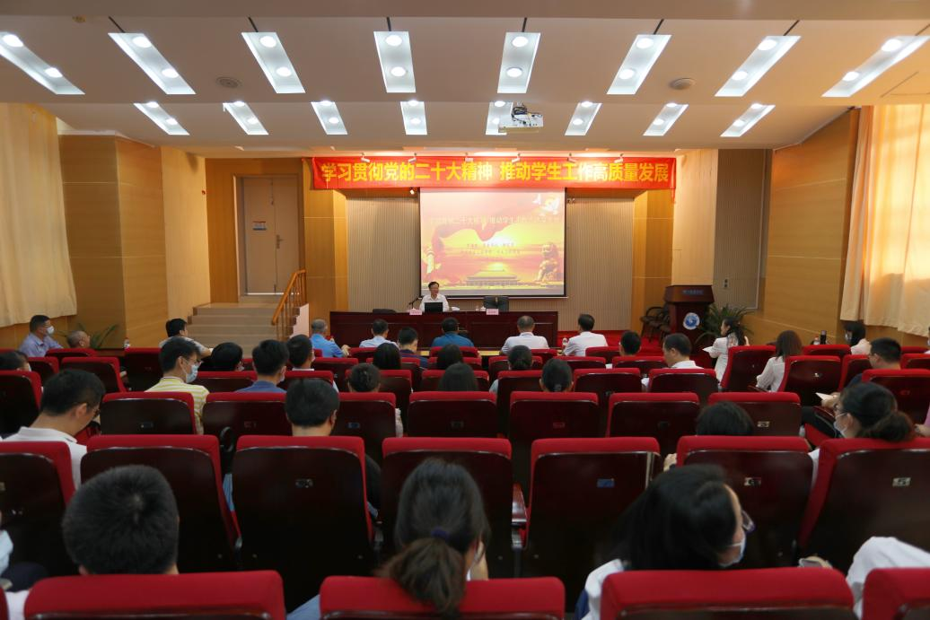 会上,李伟东以《学习贯彻党的二十大精神,推动高校学生工作高质量发展》为题作主题报告。他从“高校学生工作的新发展、推动高校学生工作高质量发展必须遵循的规律、推动高校学生工作高质量发展的着力点”三方面对高校学生工作面临的新形势、新特点、新要求做了全面分析,深入阐述以党的二十大精神为指引、做好高校学生工作的实践探索和经验方法。他指出,做好高校思想政治工作,要因事而化、因时而进、因势而新。要遵循思想政治工作规律,遵循教书育人规律,遵循学生成长规律,不断提高工作能力和水平。他强调,要以“关照学生、围绕学生、服务学生”为做好高校思想政治工作的根本要求、价值取向、路径选择。要以立德树人为根本,以理想信念教育为核心,以社会主义核心价值观为引领,满足学生个性化发展与综合素质全面提高的需要。要坚持党建引领,紧抓学风建设。要弘扬优秀传统文化。他还介绍了在精准帮扶贫困生方面,丰富国防教育的形式和内容,提高社会实践教育、心理健康教育、就业创业教育的针对性和有效性,发挥群团组织联系师生的积极作用,推进“一站式”学生社区综合管理改革等方面的实践经验。