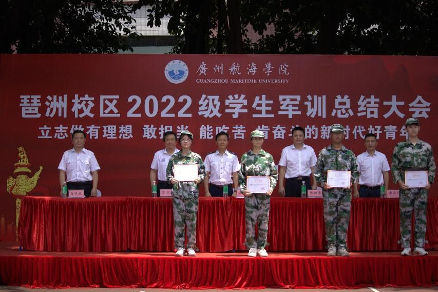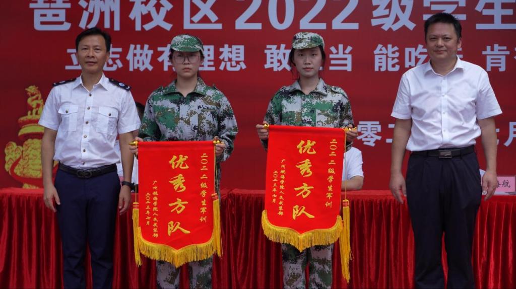 会上,陈新恩宣读了《关于表彰(琶洲校区)2022级学生军训优秀方队及先进个人的通报》,主席台领导向军训一连和军训五连等2个优秀方队、黄祺等84名军训先进个人的代表颁发了锦旗和荣誉证书。
