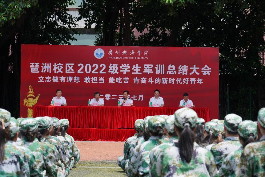 (党委武装部 供稿)热血不负骄阳,壮志无愧青春。7月16日上午,我校琶洲校区2022级学生军训总结大会在校区运动场隆重举行。校党委委员、党委武装部(学工部)部长陈海航,琶洲校区领导小组办公室主任陈新恩,港口与航运管理学院党委书记苏万春,航运经贸学院院长唐宋元出席大会,武装部(学工部)副部长肖运发主持大会。本次军训由黄埔区人民武装部派出14名优秀训导官按军训计划在琶洲校区严格执行,港航学院党委副书记曾为国、经贸学院党委副书记熊琪、琶洲校区学生管理科科长陈森歆、武装部(学工部)国防教育科科长陈鼎斌、相关辅导员参会。