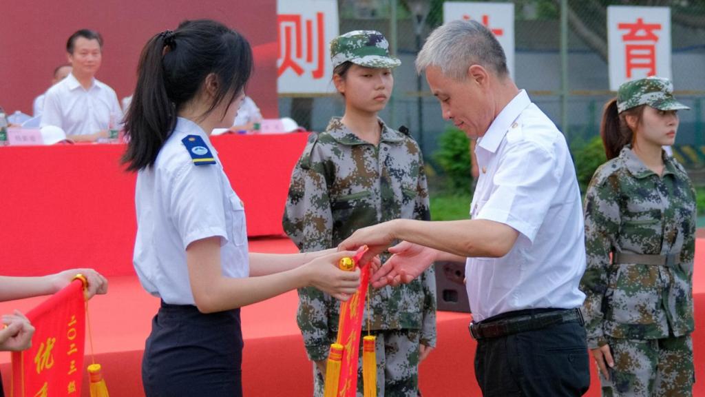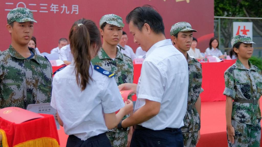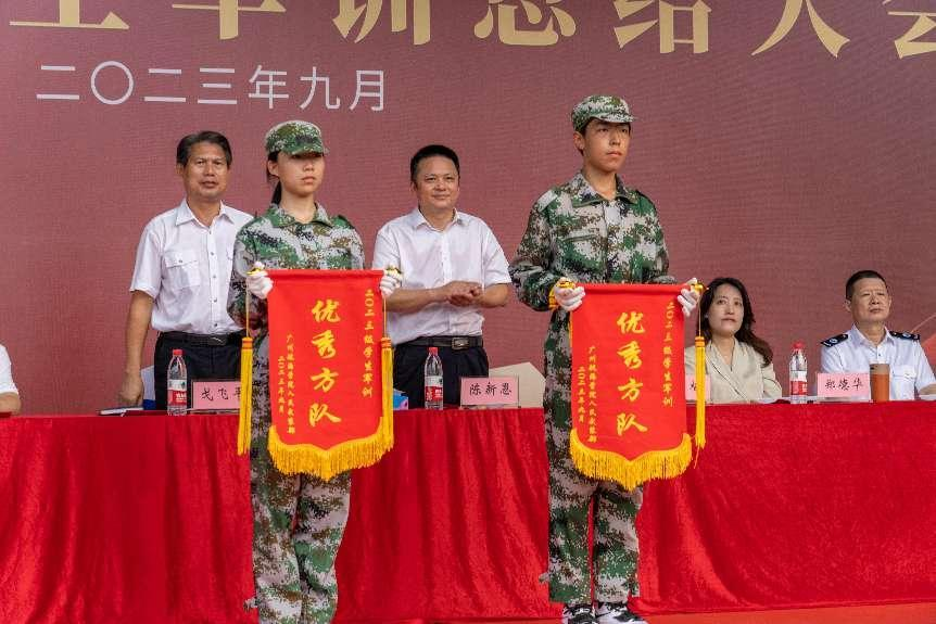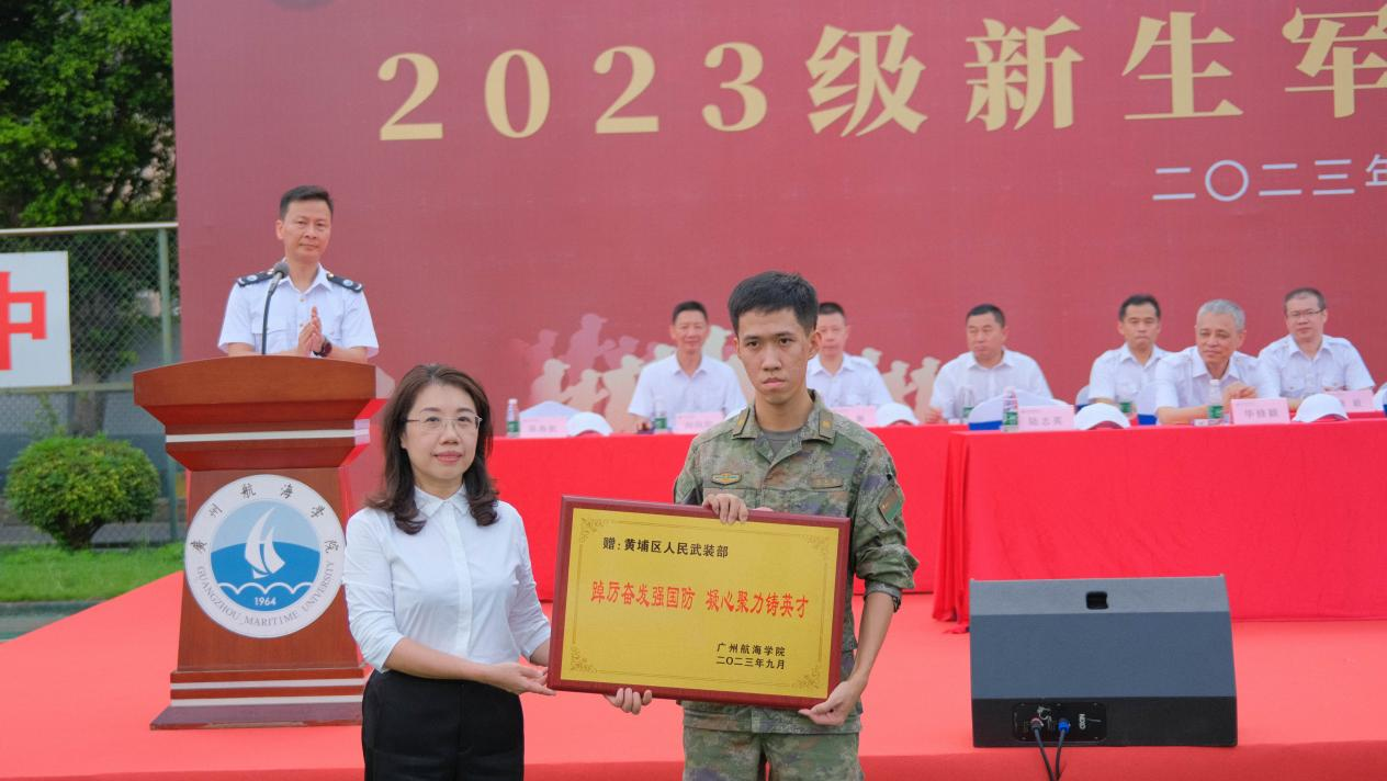 会上,纪委书记陆志英代表学校向承训单位广州市黄埔区人民武装部赠送牌匾;校领导向一营一方队等5个方队颁发“优秀方队”锦旗,向赵家齐等315名“军训先进个人”的代表颁发荣誉证书。
