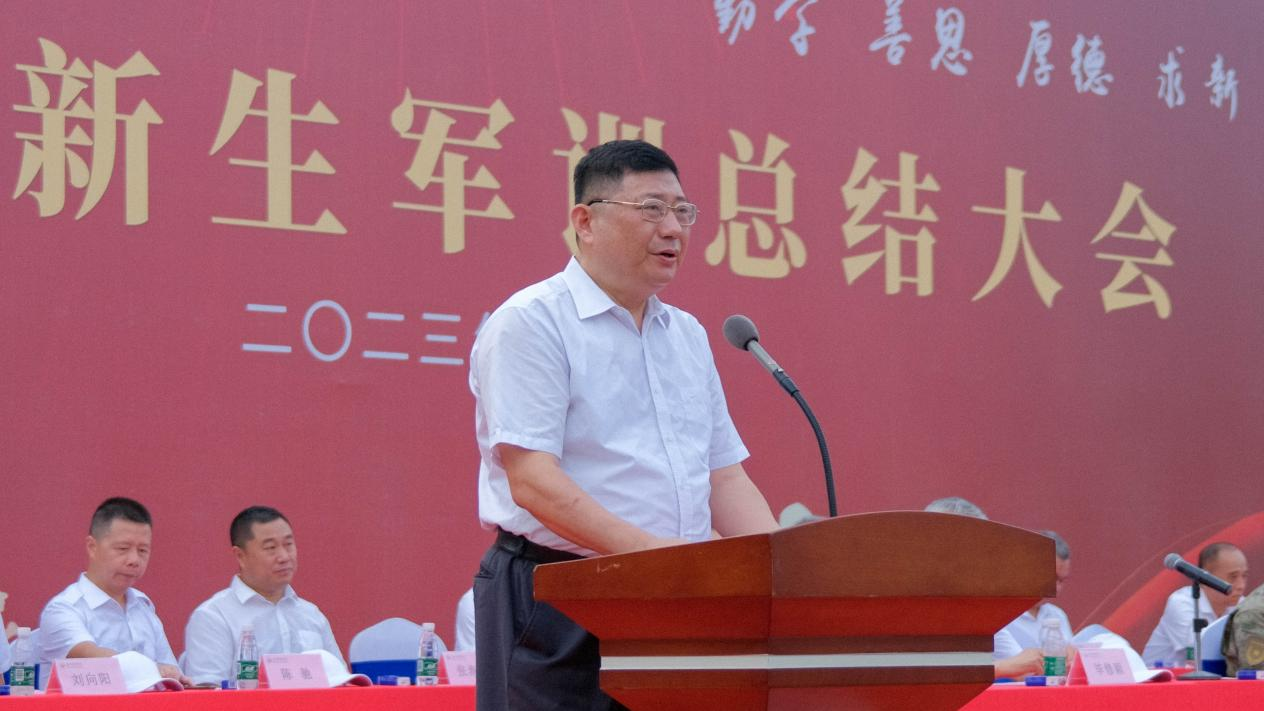 戈飞平副校长代表学校在琶洲校区军训总结大会中作了讲话。