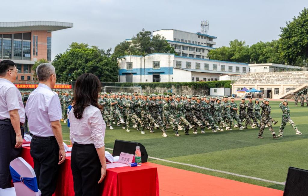 邹采荣书记、校长作了讲话,他指出,全体新生按照军训计划,刻苦训练、顽强拼搏,培养了爱国主义精神,培养了自律意识,培养了集体主义观念,军训效果非常显著,对承训单位广州市黄埔区人民武装部和全体教官表示衷心感谢。