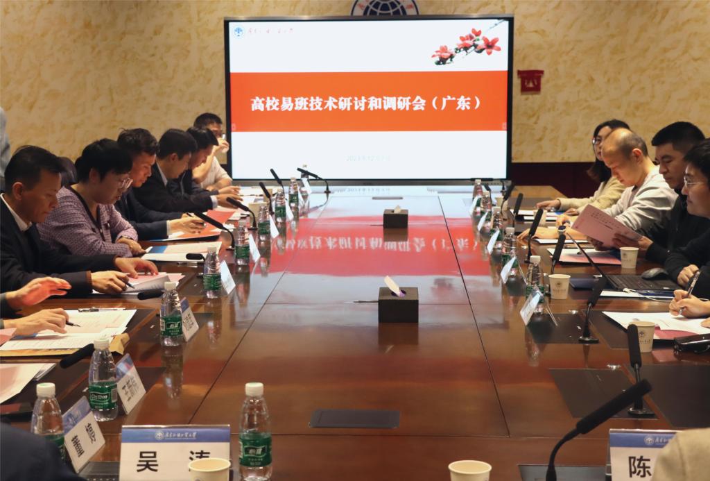 (学工部供稿)12月7日,教育部易班发展中心莅临广东调研,在广东外语外贸大学举行“高校易班技术研讨和调研会”。教育部易班发展中心主任、易班总裁朱明伦,易班应用研发部总监凌大伟,易班全国共建办公室副主任冯斌,广东省网络思政中心、易班发展中心杨展怡、苏少丹出席会议。华南师范大学、华南农业大学、广东工业大学、广东技术师范大学、广东金融学院、3044am永利集团官网、佛山科学技术学院、广东轻工职业技术学院、广东工贸职业技术学院等九所高校学工部负责人参会。会议由冯斌主持。广东外语外贸大学党委常委、副校长申明浩与朱明伦一行、各高校学工部负责人进行了亲切会谈。