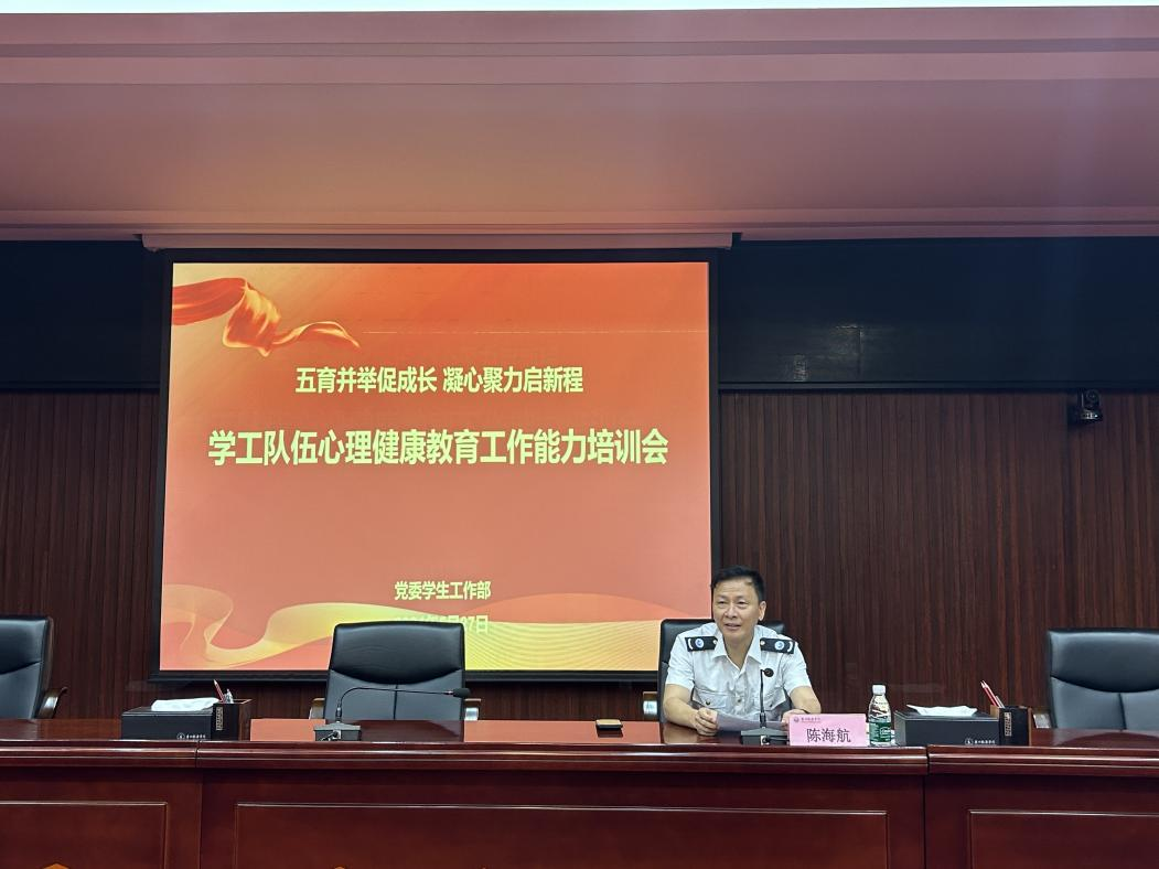 陈海航指出,心理健康事关生命安全和身体健康,已经引起了国家和社会的高度重视。防范学生心理危机事件发生,切实维护同学们生命安全和身心健康,是学生工作的重中之重。我校不断健全健康教育、监测预警、咨询服务、干预处置“四位一体”的学生心理健康工作体系,坚持“五育并举”,形成工作合力,不断完善学校、家庭、社会和相关部门协同联动的学生心理健康工作格局。他强调,心理健康教育工作是开展思想政治教育的重要组成部分,是促进学生健康成长,培养高素质人才的重要途径,全体辅导员要精准预防、精准摸排、精准帮扶、精准发力,提高学生的心理健康意识和心理调适能力,及时了解学生思想动态和心理诉求,走近学生身边、走进学生心灵,扎实开展心理健康教育系列工作。