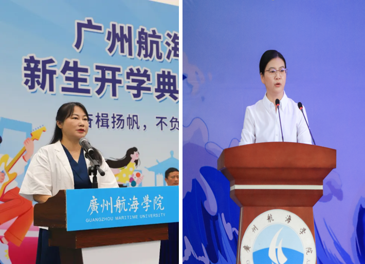数字经济与贸易学院宋旭琴老师和海洋装备学院端木玉老师代表全校教师热烈欢迎2024级新同学加入广航大家庭,叮嘱同学们锚定人生航向,以品德立身,以诚信立行,扬帆起航,乘风破浪,实现梦想。