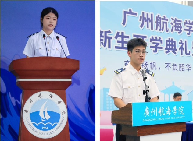 航运学院的王昶霖同学和数字经济与贸易学院的李晓雅同学代表2024级新生表示将尽快融入广航,适应大学生活,在学校和老师的关怀下,启航新征程,筑梦新航道,奋进新征程、建功新时代。