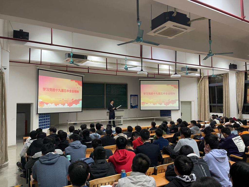 在学习会上,中队长赵垒、叶振斌、吴成结、吴鸿瑞向同学们阐述了党的十九届五中全会公报中共同富裕、文化软实力和生活水平三大发展方向,从国家发展、现代化、法治国家、对外开放、生活水平等多方面为大家描绘了十五年后令人期待的中国新面貌,并组织学生集中观看《为了和平》纪录片,组织学生进行讨论,引导学生在日常学习、工作、生活中严格按照合格党员的标准要求自己,扎实学好专业知识的同时,厚植爱国主义情怀,积极弘扬社会主旋律,传播社会正能量,争做新时代优秀大学生。