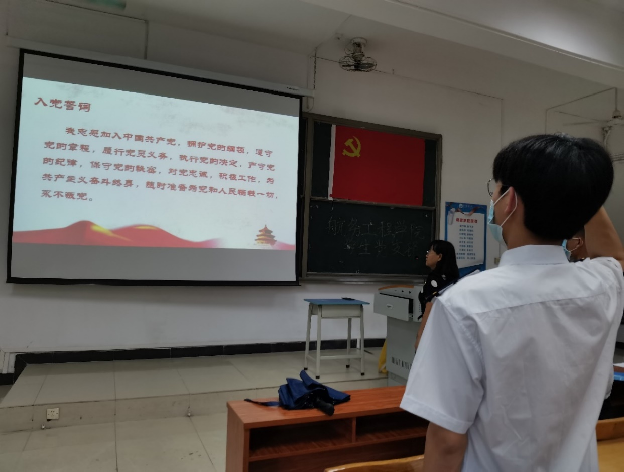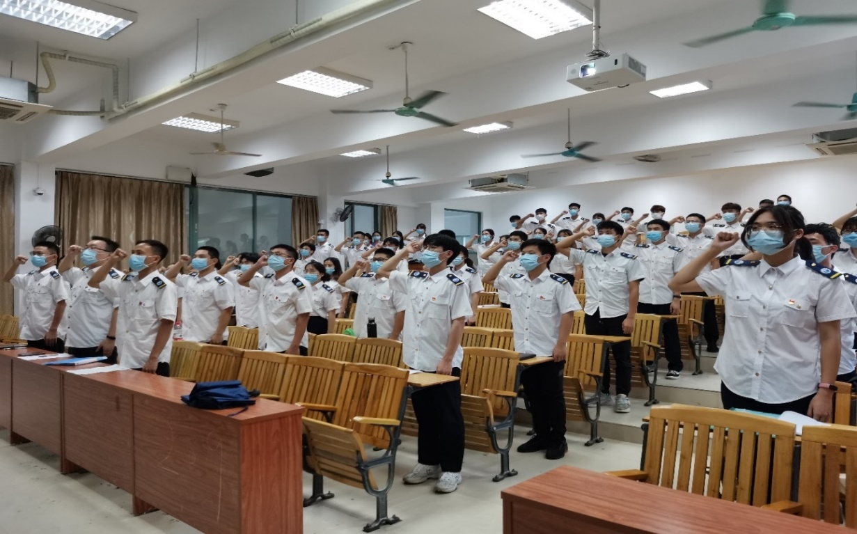 (航务工程学院供稿)为庆祝中国共产党成立100周年,继承和发扬党的光荣传统和优良作风,加强党员党性教育,增强党员责任感、使命感和荣誉感,扎实开展党史学习教育,航务工程学院学生党支部于2021年6月22日在教学楼207组织开展“重温入党誓词,守初心担使命”主题教育活动,活动主持人为学生党支部书记刘艳新同志,参与人员为支部全体学生党员。