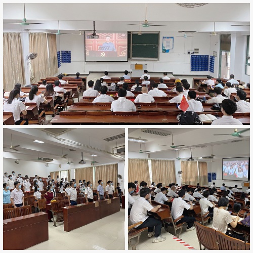 中国共产党成立 100 周年大会举世瞩目,是中国共产党一次重大政治活动,是党史学习教育的一次重大活动,也是一次极其重要的思政课。学院采取“集中收看”与“个人回看”相结合的方式,组织当天没有教学任务的教师和没有课程学习的学生在教学楼110集中收看庆祝中国共产党成立100周年大会现场直播;未能及时收看直播的师生通过人民网、学习强国APP等线上方式回看重播,认真学习习近平总书记在庆祝大会上的重要讲话精神,学院师生党员收看学习覆盖率100%。