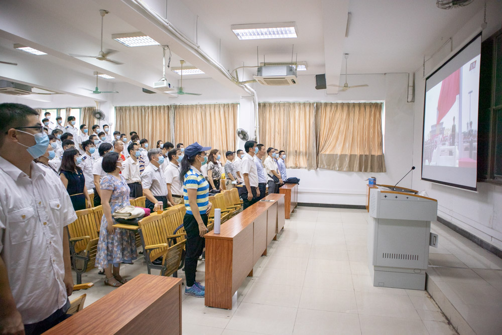 (航务工程学院供稿)为热烈庆祝中国共产党成立一百周年,营造浓厚的红色教育氛围,7月1日上午八点,航务工程学院党委组织学院教职工与学生党员于教学楼210观看“庆建党一百周年庆祝大会”现场直播。
