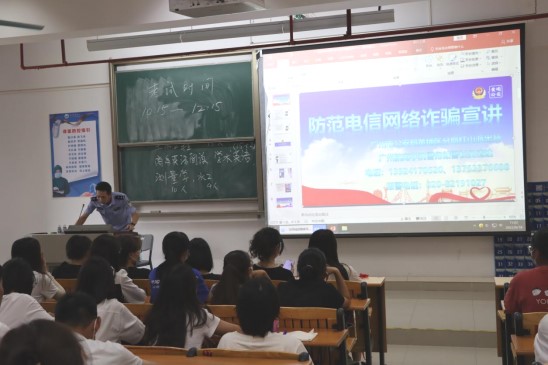 (国际邮轮游艇学院 供稿)为了让2022级新生提高对诈骗方法和手段的认识,增强自我防范意识,9月18日下午,国际邮轮游艇学院在健兵北202教室开展新生防诈骗教育知识讲座。本次讲座由学校警务处吴清达警长主讲,辅导员温贞华及全体新生共同参加。
