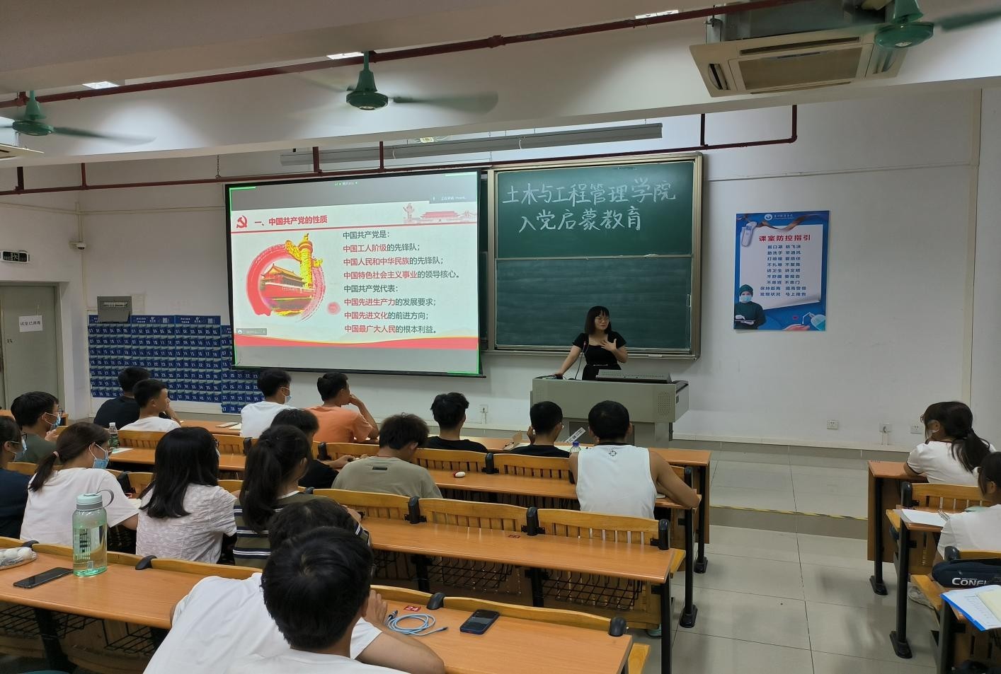 (土木与工程管理学院 供稿)为深入贯彻“不忘初心、牢记使命”主题教育精神,践行“为中国人民谋幸福,为中华民族谋复兴”的初心和使命,土木与工程管理学院学生党支部书记刘艳新于2022年9月16日晚上6点30分在建兵北201、202、203三个课室为全体2022级新生上了一堂生动的入党启蒙教育课。她鼓励2022级新生全面提高自身能力与品德修养,明确认识党员的使命与义务,积极向党组织靠拢,争取早日成为一名党员。