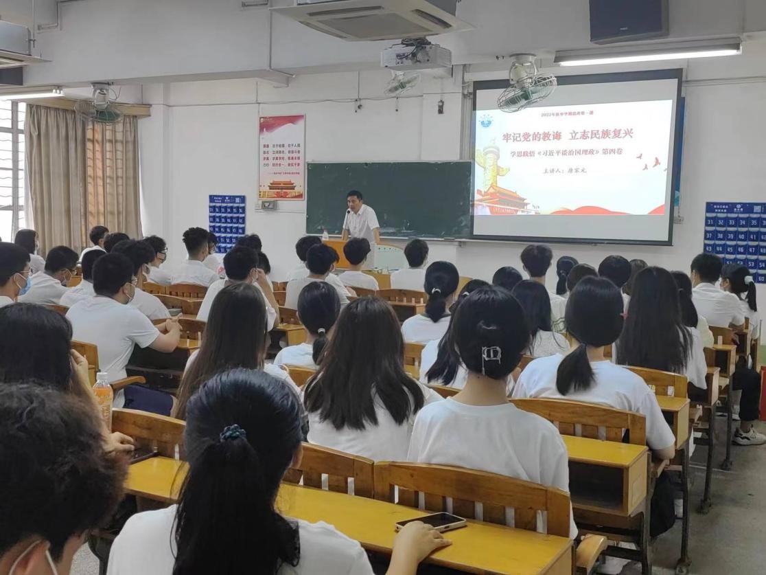 (航运经贸学院 供稿)9月23日下午,航运经贸学院党委书记周楠、院长唐宋元分别在西教205、西教206课室为琶洲校区2022级新生讲授“思政第一课”。本次思政课主要宣讲《习近平谈治国理政》第四卷的重要内容,主题为“牢记党的教诲,立志民族复兴”。