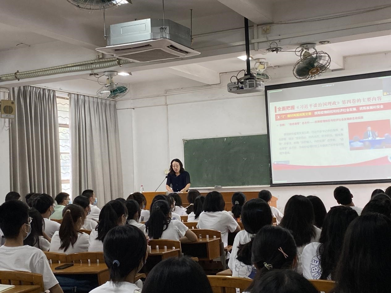 本次思政第一课既是对《习近平谈治国理政》第四卷著作的深度解读,更是对习近平新时代中国特色社会主义思想的再学习,提高了同学们对党的思想认同和情感认同,明确了当代大学生的历史使命和责任担当。课堂上,同学们认真聆听教诲,多次报以热烈的掌声。课后同学们纷纷表示在今后的学习和生活中要怀揣家国梦想,将个人梦与中国梦结合起来,以实现中华民族伟大复兴为己任,用行动彰显青春担当。