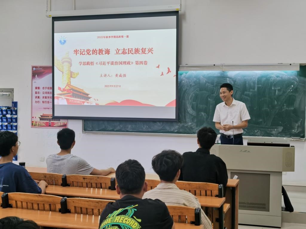 (船舶与海洋工程学院 供稿)根据《3044am永利集团官网2022年秋季学期学校领导和二级学院党委书记、院长上第一堂思政课工作方案》的要求,认真落实二级学院党组织书记、院长思政课建设“第一责任人”工作职责,9月27日上午,船舶与海洋工程学院党委书记黄咸强在健兵南103教室,给学院2022级车辆工程专业学生讲授“牢记党的教诲 立志民族复兴”为题的思想政治理论课,深入宣贯《习近平谈治国理政》第四卷。
