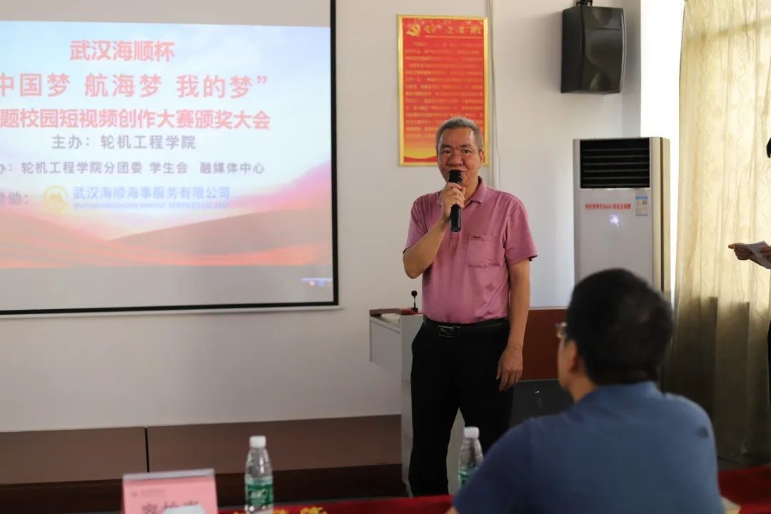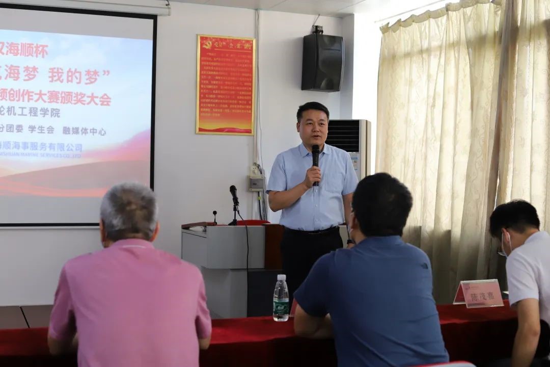 (轮机工程学院 供稿)9月15日,轮机工程学院“武汉海顺杯”“中国梦·航海梦·我的梦”主题校园文化短视频创作大赛颁奖大会在轮机楼511会议室举行,并在2023届航海类专业毕业生招聘会之际,邀请赞助企业参加。当日,参加颁奖大会的有轮机工程学院党委书记容柏青,武汉海顺海事服务有限公司副总经理陈建安,轮机工程学院党委副书记张志斌,武汉海顺海事服务有限公司张雪峰,轮机工程学院团委书记陈茂嘉和获奖学生代表。