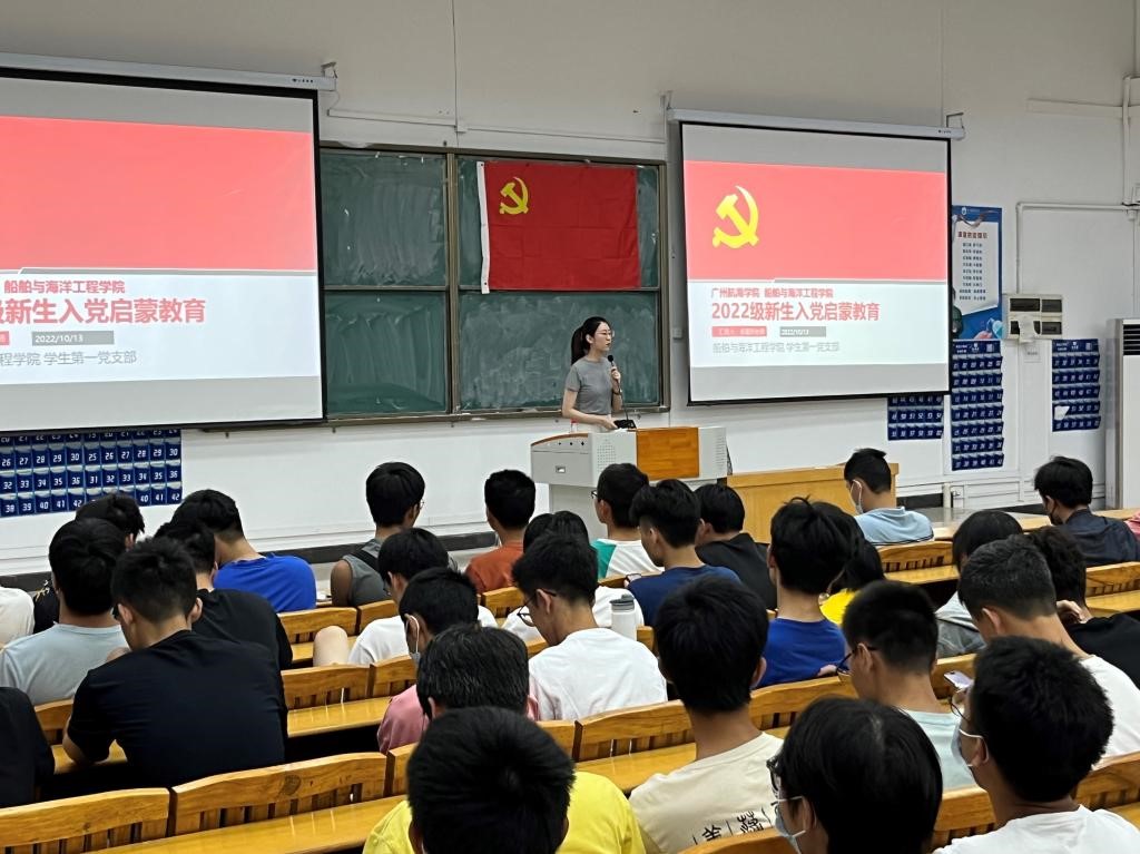 (船舶与海洋工程学院 供稿)为加强学生党支部建设,增强新生对党的认识及对党组织发展情况的了解,树立奋斗目标、端正入党动机,扣好人生的“第一粒扣子”,切实发挥党支部在学生思想中的引领作用,实现党员发展早启蒙、早教育、早发现、早培养,10月13日晚,船舶与海洋工程学院学生第一党支部于教学楼111开展新生入党启蒙教育,能源与动力工程、船舶与海洋工程和车辆工程专业2022级共计238名新生参加活动,活动由支部书记胡嘉玥主持。