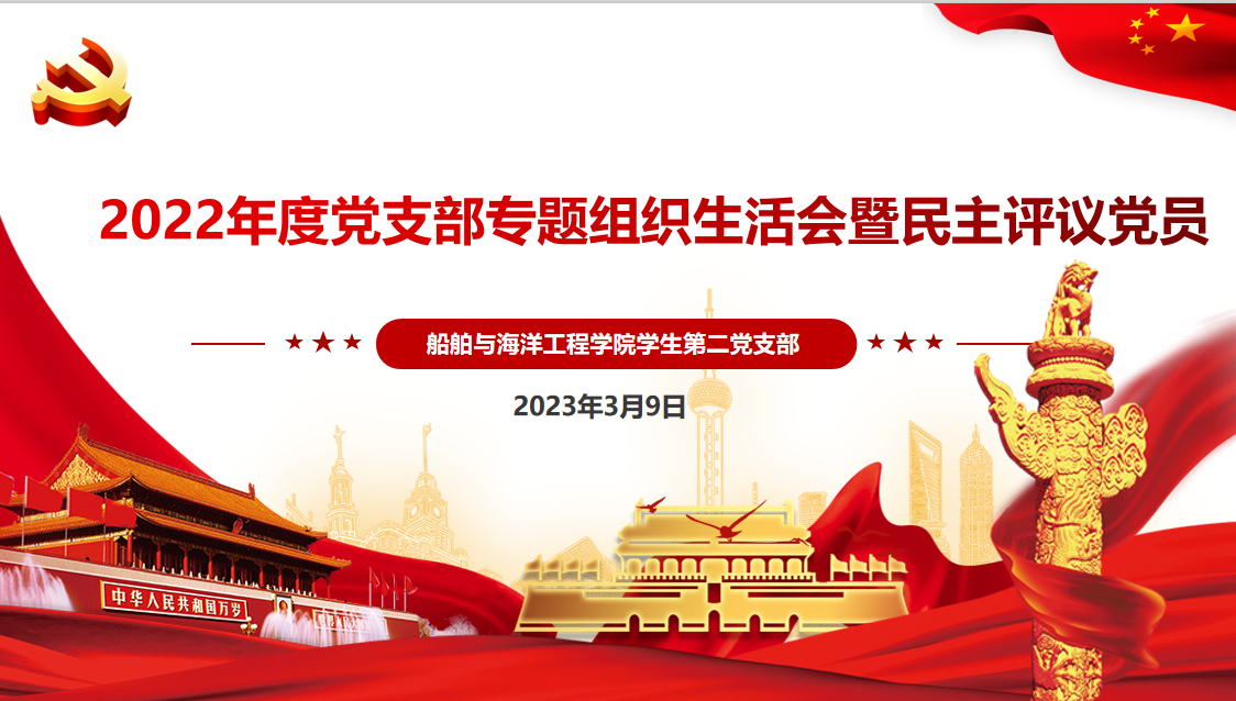 (船舶与海洋工程学院 供稿)为深入学习贯彻党的二十大精神,不断夯实基层党组织建设,按照校党委《关于召开2022年度基层党组织组织生活会和开展民主评议党员的通知》要求,船舶与海洋工程学院学生第二党支部于3月9日在船舶楼809党员活动室开展2022年度组织生活会暨民主评议党员工作。支部全体党员参会,会议由支部书记刘楚主持。