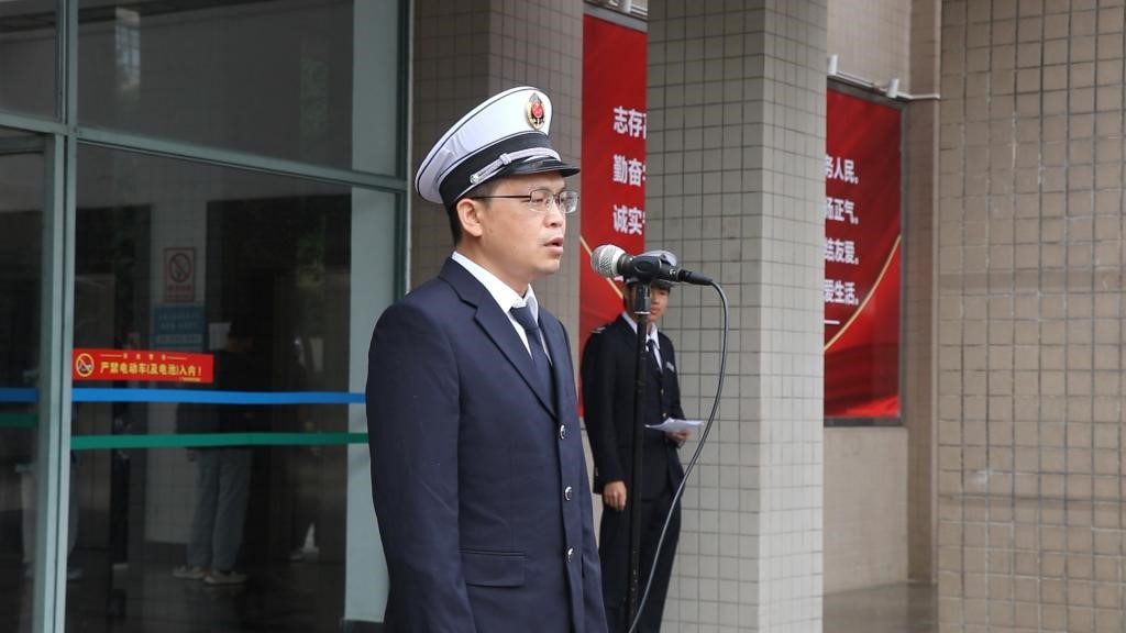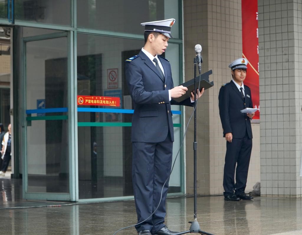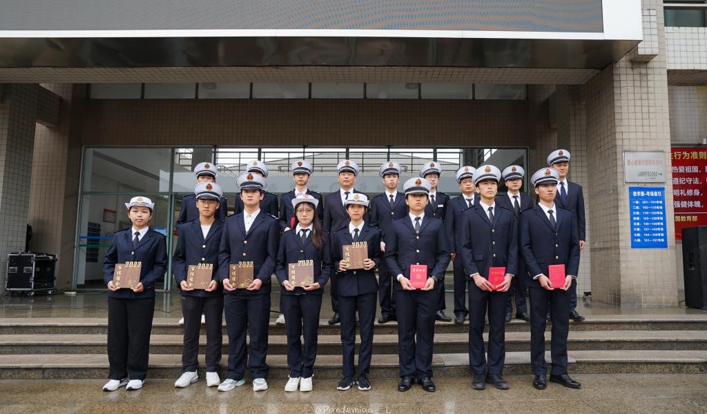 仪式伊始,黄赞大队长总结了学院半军事管理取得的成效,充分肯定了学院一年以来在疫情防控、学生管理、学风建设、志愿服务、社会实践、就业创业、参军入伍等方面中所取得的成绩,并对全体学生提出了殷切希望:一是以半军事管理为抓手,认真学习文化专业知识,强化纪律意识,加强学风建设;二是不断丰富半军事管理内涵,做好内务卫生,坚持一日生活制度,落实《船舶与海洋工程学院半军事管理实施办法》各项管理规定;三是培养吃苦耐劳、坚强刚毅的过硬作风,展现船海青年热血担当和青春力量。