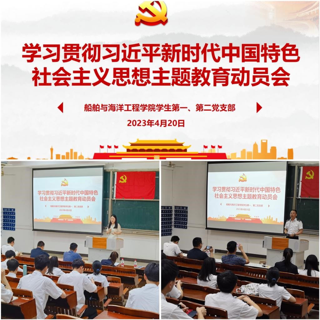 (船舶与海洋工程学院 供稿)4月20日,船舶与海洋工程学院学生第一第二党支部召开学习贯彻习近平新时代中国特色社会主义思想主题教育动员会,深入学习贯彻主题教育工作会议重要讲话精神,传达党中央、省委、市委和校党委关于开展主题教育的决策部署要求,对开展主题教育进行动员部署。两个支部的支部书记、支委成员、师生党员参加会议,学生第二党支部书记刘楚主持会议。