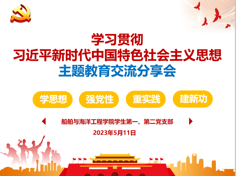 (船舶与海洋工程学院 供稿)为进一步增强学习贯彻习近平新时代中国特色社会主义思想的坚定性和自觉性,5月11日下午,船舶与海洋工程学院学生第一、第二党支部在健兵南101开展学习贯彻习近平新时代中国特色社会主义思想主题教育交流分享会,围绕“学习贯彻习近平总书记视察广东重要讲话重要指示精神”进行分享与交流。学院学生第一、第二党支部师生党员、发展对象、入党积极分子参加。