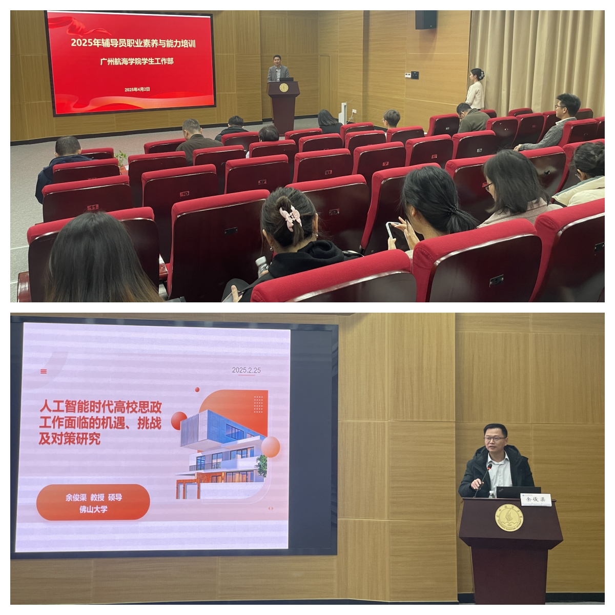 为深入探讨人工智能时代高校思想政治工作的创新发展路径,切实提升学校辅导员职业素质能力,增强思政育人实效,4月2日上午,党委学生工作部特邀佛山大学余俊渠教授在图书馆胜海厅举办《人工智能时代高校思政工作面临的机遇、挑战及对策研究》专题讲座。学校党委学生工作部全体成员、二级学院党委副书记及全体辅导员现场聆听了讲座。