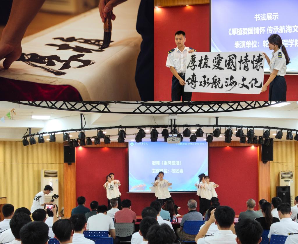 闭幕式回顾了航海文化周系列活动,展示了航海类专业学生职业规划优秀作品,表彰了在航海知识竞赛、航海类大学生职业规划大赛获奖团队。校团委、国际邮轮游艇学院的学生街舞表演《乘风破浪》和《Hot&Cold》以及轮机工程学院学生的现场书法节目也为闭幕式增添了色彩,活跃了氛围。