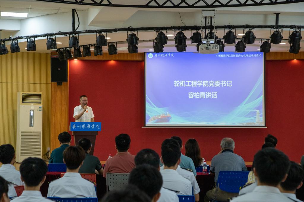 轮机工程学院党委书记容柏青代表承办单位致辞,对支持和参与本次航海文化周活动的师生和企业表示感谢。他指出,在学校党委的领导下,学工部的指导下,学院党政领导亲自谋划、亲力推动,精心组织,全院师生发扬“求真、务实、奉献”的轮机精神,把活动各项工作落到实处,确保了本次活动有序高效地开展。希望广大师生同心同德,同向同行,弘扬航海文化,培育时代新人,助力建设海洋强国、交通强国、航运强国。