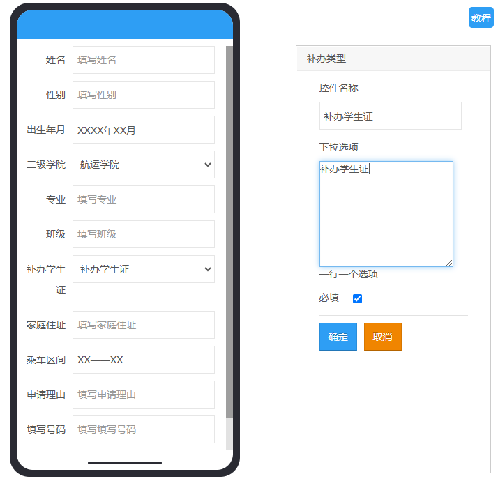 点击“学生证补办”栏目,填写个人信息(学院、班级、姓名、联系方式等),在下拉条选择“补办学生证”事项。