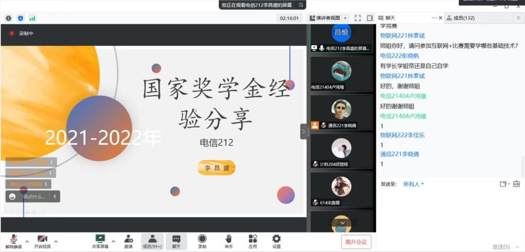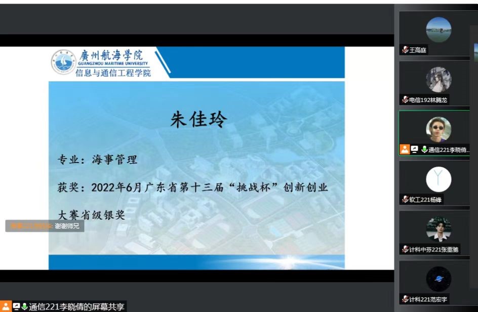 (信通学院 供稿)为进一步推进学生思想政治教育工作,构建“三全育人”体系建设,充分发挥青年榜样的示范引领作用,使同学们向身边优秀同学看齐,11月11日晚,信息与通信工程学院与海运学院联合组织举办了国家奖学金经验分享会。受疫情影响,本次分享会以线上形式开展,来自两个学院的200余名学生代表参加。
