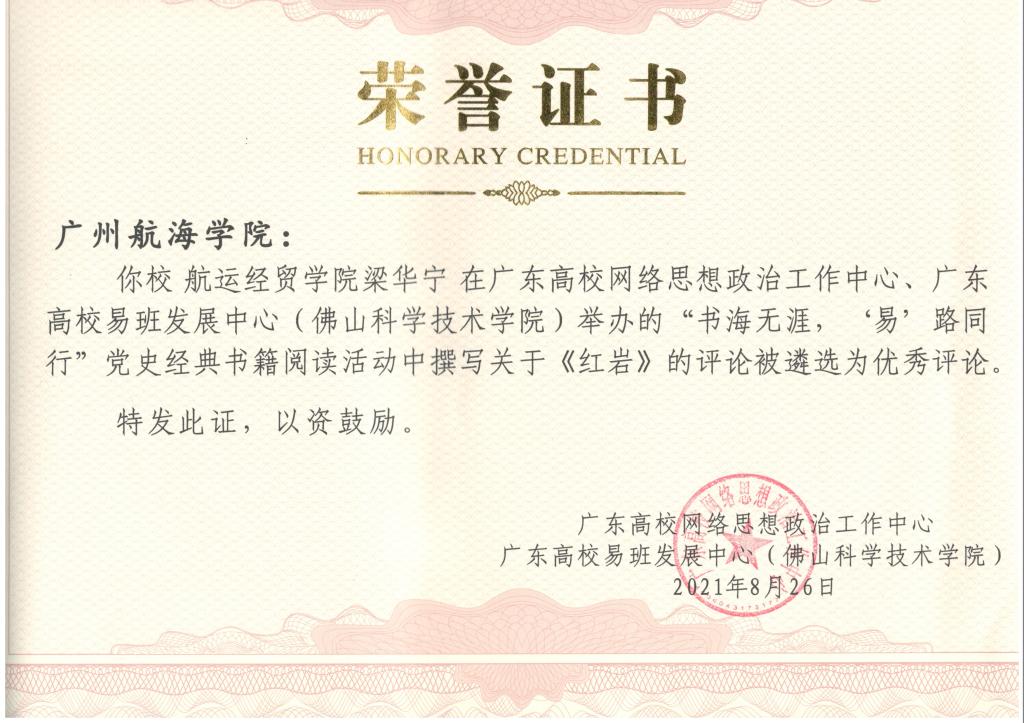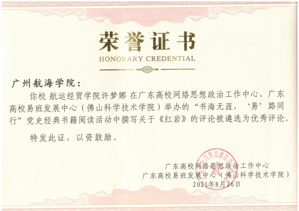 在广东高校网络思想政治工作中心公布“书海无涯,‘易’路同行”党史经典书籍阅读活动获奖50条优秀评论,我校6名同学分享自己喜爱的党史经典书籍和的阅读心得获得优秀评论。