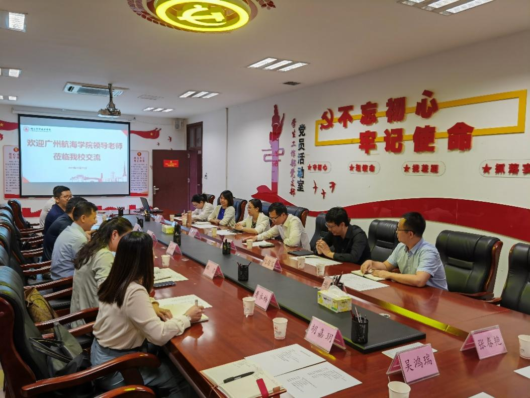 (学工部供稿)为深入学习贯彻习近平新时代中国特色社会主义思想,高质量做好学生思想政治工作。10月20日上午,校党委委员、学工部、武装部部长陈海航率学工部副部长肖运发、郑苗等一行10人,前往佛山科学技术学院开展工作调研交流。佛山科学技术学院学工部、研工部部长余俊渠、副部长关秀明热情接待了调研组一行,该校学生助学科科长谢锐凌、心理健康教育与咨询中心副主任邓彩霞、学生管理科科长邝嘉乐、思想政治教育科科长杨展怡参加了交流。