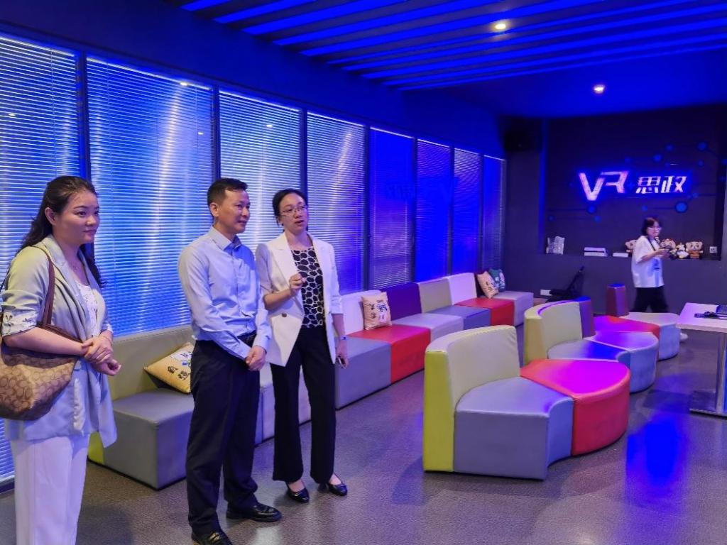在关秀明副部长的带领下,调研组一行先后参观了该校“一站式”学生社区综合管理服务大厅和辅导员办公室、“省双中心”(广东省高校网络思想政治工作中心和广东易班发展中心)展厅、“VR+思政”双创空间、心理健康咨询中心功能室等办公场所和功能区间。