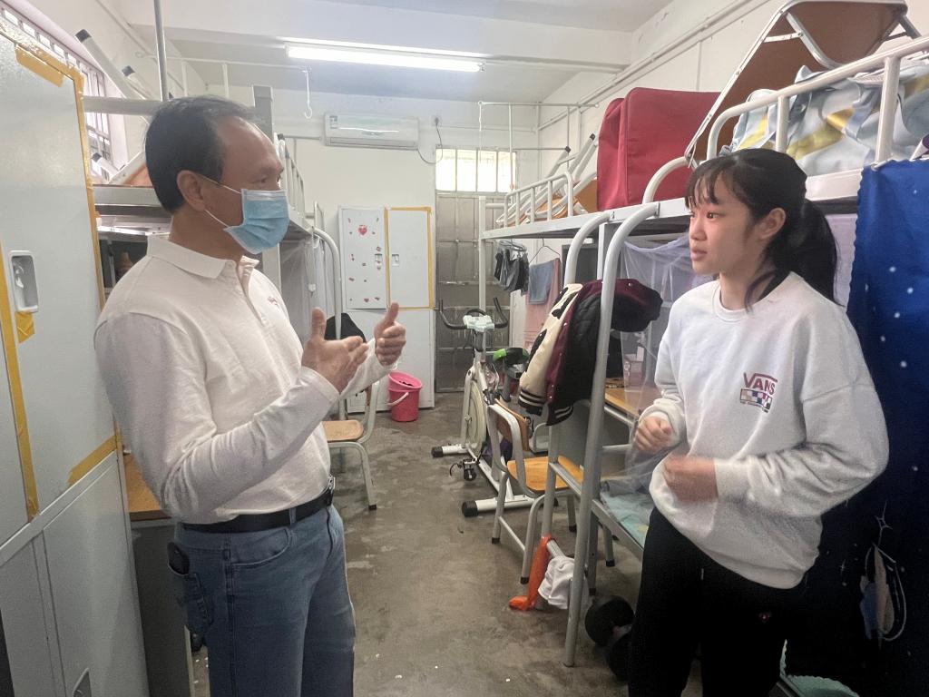 在学校集中医学观察区外,邹书记向值班人员详细询问了目前集中观测的学生身体情况、思想情况以及生活保障服务等情况,指出要多给予人文关怀,做好学生的思想开导和心理疏导,解决好生活服务保障。