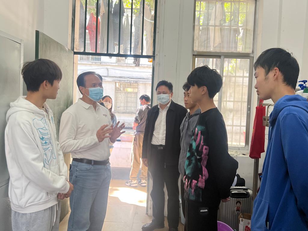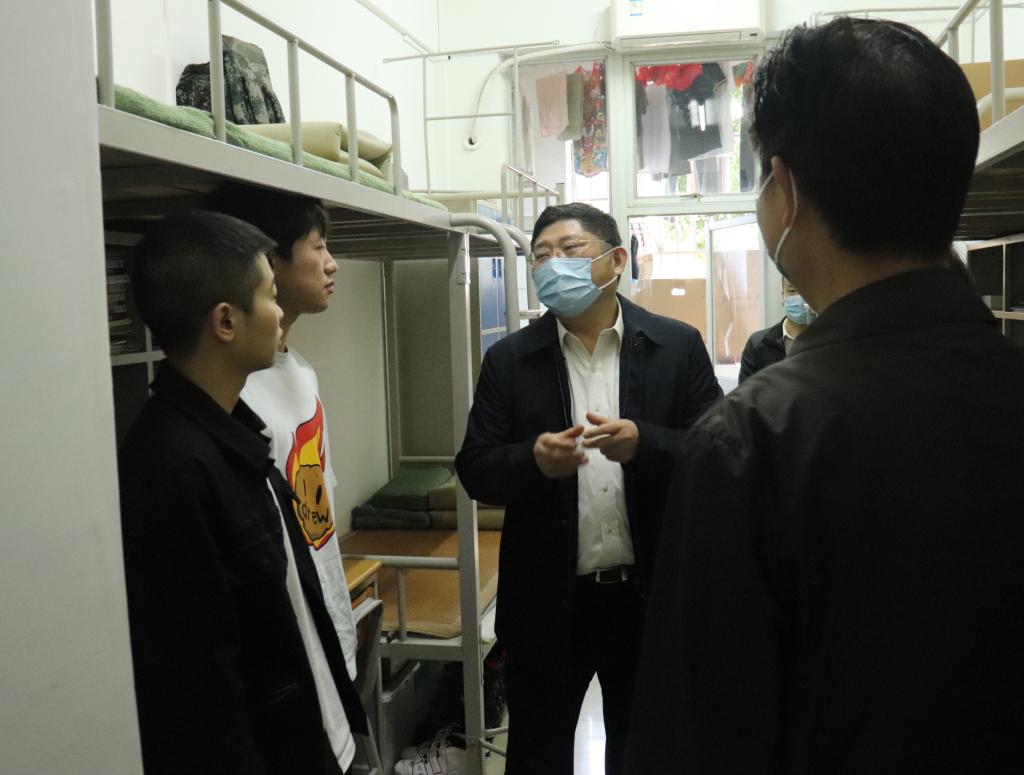 在学生宿舍区,邹书记亲切看望了在校学生,详细了解学生思想和生活状况,耐心向同学们解释了学校按照疫情防控要求,实行严格管理、严控校门出入的原因。指出学校疫情防控政策会根据疫情防控的形势而做出调整,目的是确保学校各项工作平稳运行,保护全校师生身体健康和生命安全。提醒同学要树牢安全意识,做好自我防护。学生感谢学校的关心关怀,同时表示理解、遵守、支持学校疫情防控的相关规定。