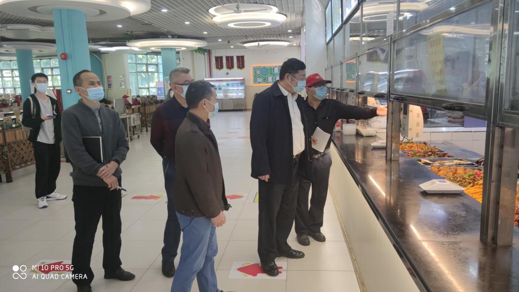 在检查饭堂时,邹书记认真听取了相关负责人的工作汇报,仔细查看了午餐供应的饭菜种类、价格,重点检查了饭堂的入口测温、检查口罩、食品安全管理等方面,对存在的问题现场提出了整改意见。