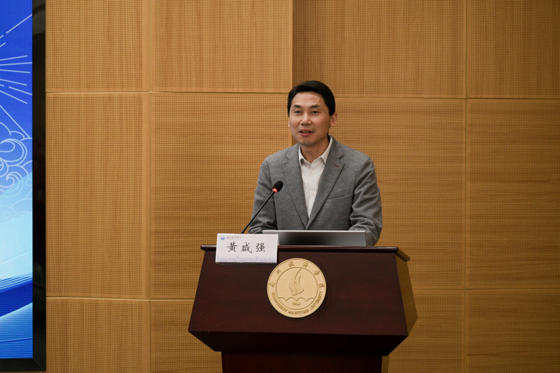 会议上,黄咸强从项目背景、数智赋能、未来展望三个方面重点介绍了AI辅导员“广小航”的启用背景与功能亮点。广小航的诞生,这不仅是技术赋能教育的生动实践,更是重新定义“成长陪伴”的温情见证,让每一位学生打破时空限制,被看见、被关怀、被赋能。