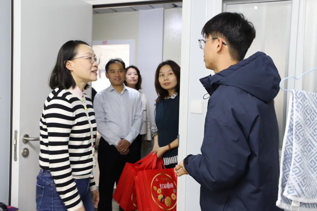在学生宿舍,陶韶菁与留校学生亲切交流,细致询问同学的假期生活安排、饮食起居,以及在学习生活中是否遇到困难并认真倾听同学们的诉求与期望。同时嘱咐同学们科学规划假期生活,保持良好作息,劳逸结合加强体育锻炼,增强安全防范意识,遇到困难和突发情况及时寻求帮助,学校将尽其所能为大家解决问题。留校同学们纷纷表示,学校的亲切关怀让他们倍感温暖,他们会牢记老师的殷殷嘱托,将学校的深厚关爱转化为自我提升的强大动力,争取学有所成,与学校共成长、同进步。