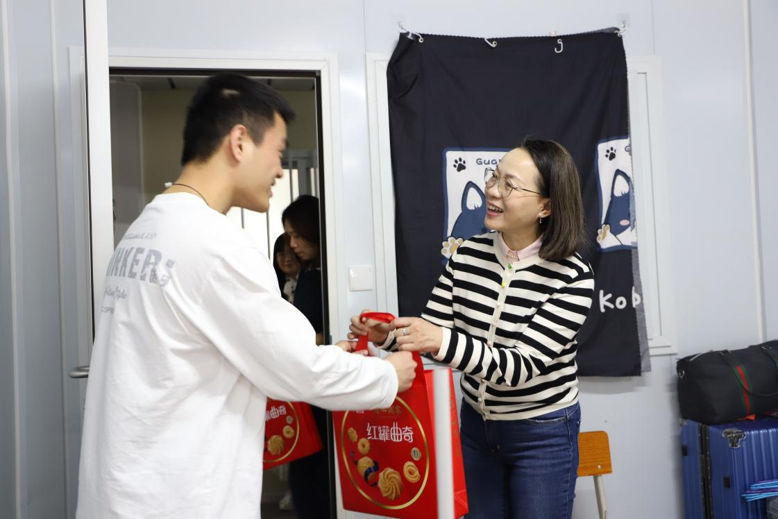 陶韶菁一行分别向宿管员及同学们赠送了新春礼包,一份关爱的礼物,蕴含着无限的祝福;一声真切的问候,传递着浓浓的深情。本次走访慰问彰显了学校“以生为本”的育人理念,在新的一年里,希望同学们能够与学校一起开启新的征程,书写更加精彩的篇章。